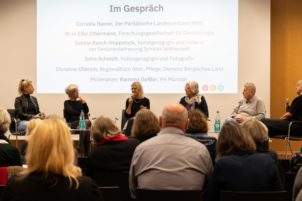 Die anschließende Gesprächsrunde knüpfte unmittelbar an die beiden Vorträge an und ging vertiefend der Frage nach, was zum Gelingen von Kooperationen zwischen Pflege und Kulturgeragogik beitragen kann. Dabei brachten die Teilnehmerinnen vielfältige Perspektiven aus Forschung und Praxis ins Gespräch ein.